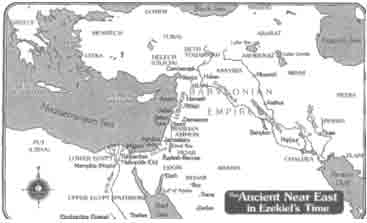 Ezekiel fik synet om dette tempel år 583 før Kr. Og i det førtes Ezekiel (hebræisk Yechetzqyah) til Israels land til det ophøjede bjerg.
