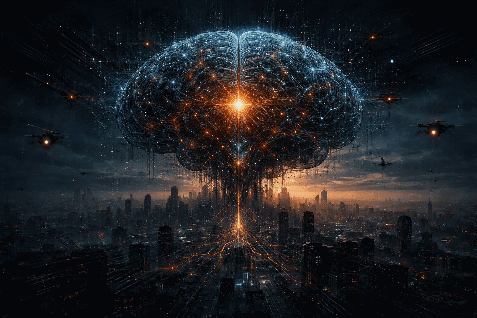 Flynn peger på, at moderne teknologi for første gang i historien skaber et system, der i praksis kan fungere som et samlet, globalt sanse‑ og beslutningsapparat. Kunstig intelligens kan se gennem millioner af kameraer, høre gennem mikrofoner, analysere gennem data og handle gennem automatiserede systemer. Det, der tidligere krævede menneskelige mellemled, kan nu ske uden samvittighed, uden søvn og uden ophør.